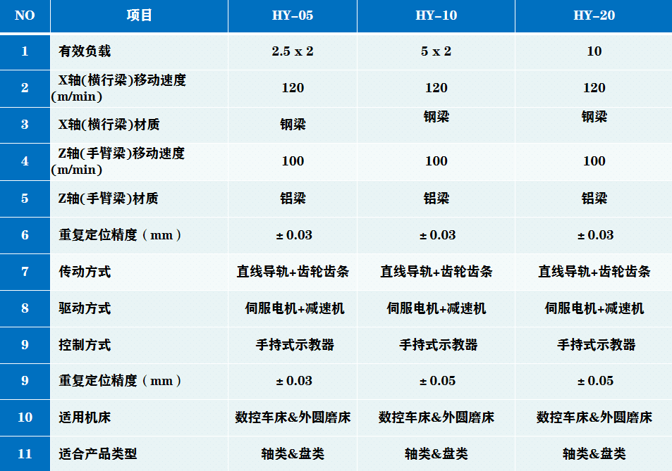 系列属于中型桁架机械手系列,优化桁架结构设计,主横梁采用齿轮齿条+线轨传动;竖梁可选多种驱动方式,结构小巧轻便,可完成零件的两个工序(或单一工序)的加工,组成一套机器人完成两台机床上下料的全自动生产线。